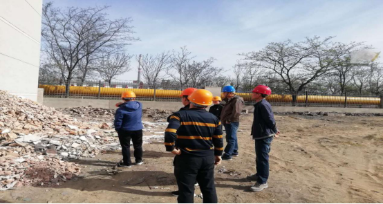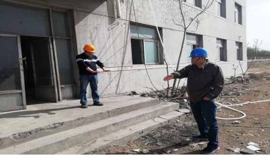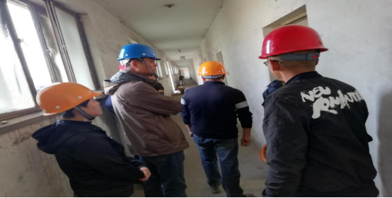 2019.4.20上午,通用集团总裁杨清海、地产公司工程经理杨学兵、预算部经理郝海霞一行对实验楼及宿舍楼改造工程进行了现场勘察,科硕化工副总经理顾利斌陪同。首先对实验楼门框高度调整、上下水管道及电线布置、消防楼梯安装、正门门厅搭建、竖立围墙及加设门岗等具体事宜进行了现场探讨;其次对宿舍楼现场测量,初步规划了卫生间、洗漱间及淋浴室布局,并查看了电路完好程度。