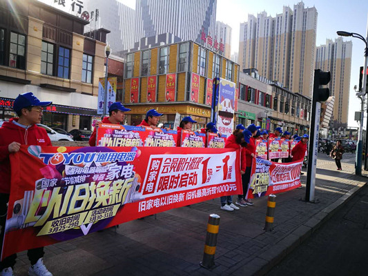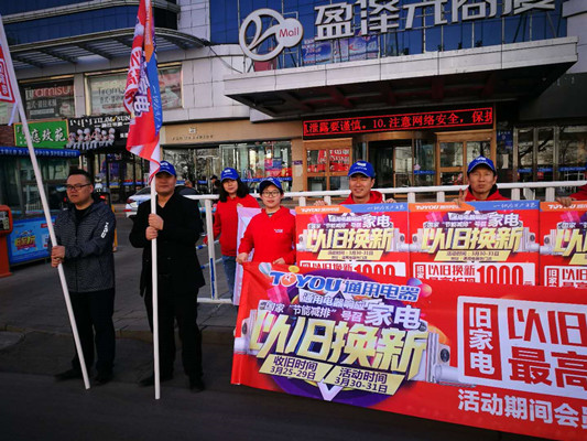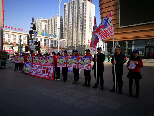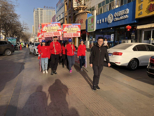 本次宣传活动将为期一周(3月25日至3月29日),办公区人员负责市中心宣传工作,主要路线为人民路由北至南(海河店十字路口至万达南门路口),途径金盘、明珠、万达、盈泽元等重要商区,由北至南包含了青山、国美等多个重点家电销售卖场;主要是采用举牌、拉条幅的徒步游街方式进行宣传。