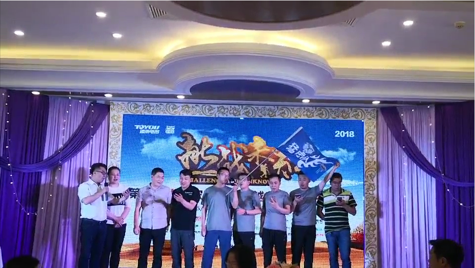 5.11:豪情壮志 誓破黄沙 此次2018第一届中国家电精英穿越乌兰布和挑战赛欢迎晚宴,于5月11日晚在内蒙古乌海宾馆宴会城隆重举行。活动主办方乌海市通用电器有限责任公司总经理黄定坚致欢迎词,为即将启程的三支队伍壮行;欢迎晚宴现场,由来自全国近50位家电精英组成的三支队伍依次亮相,展示他们的豪情壮志,5.12,誓破黄沙。
