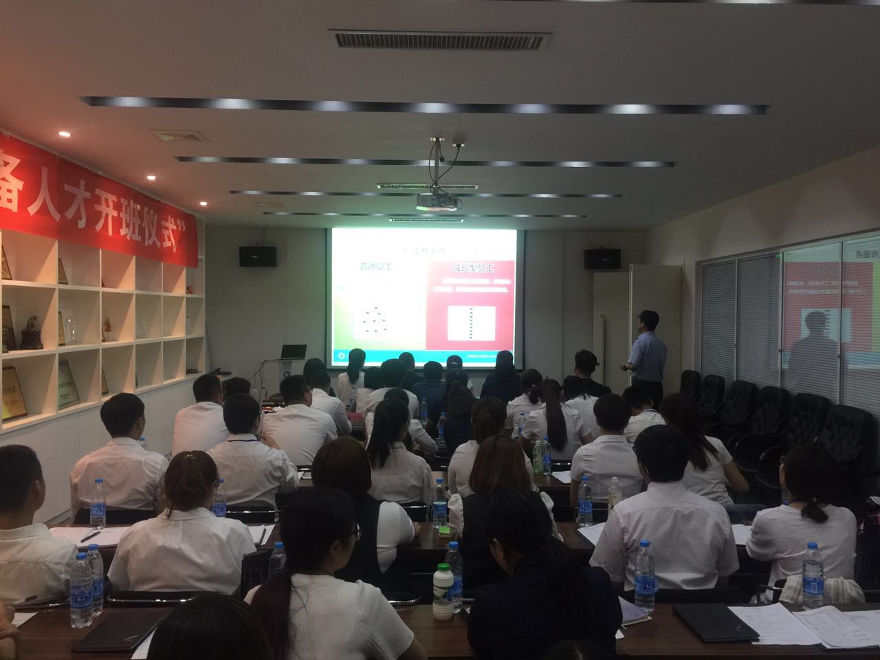 集团举行第三期后备人才班开班仪式发表时间:2017-05-12 15:03 集团举行第三期后备人才班开班仪式 2017年5月12日 18:30,集团第三期后备人才班开班仪式在集团总部二楼会议室举行。集团董事长、财务中心总监吴雪鹰及各经营单位总经理、讲师团队及最终入选的36位后备人才参加本次开班仪式。 开班仪式上,集团人力资源部部长田蕾为大家详细讲解了第三期后备人才班的课程体系与讲师队伍,让大家了解加入后备人才班我们可以收获行业先进的知识、薪资或职务晋升的机会和个人成长,我们要付出业余的时间和比别人更多的努力,同时要遵守后备人才班的各项制度与要求。电器公司李哲代表学员发言并带领36位学员宣誓,一定不辜负公司的培养、努力完成各项培训课程,我们,注定成功,注定辉煌。酒店公司张晓军代表讲师表态,一定会精心准备各项培训课程,不辜负公司和学员的信任,将自己所知、所学倾囊相授。 开班仪式结束后,集团董事长为大家带来了本期后备人才班的第一节课:《企业未来发展方向和通用需要什么样的人》。董事长为在座的各经营单位总经理和学员从“养猪理论”、“轻资产”、“对外拓展”三个方面告诉我们走向资本市场是公司未来发展的大方向,并从“刚入职时的表现”、“对待问题的态度”、“执行力”、“个性”、“下班后的生活”、“工作重点的把控”、“客户沟通”、“受到批评的表现”、“职业生涯规划”九个方面为我们解析普通员工和成长型员工的区别,成为“成长型员工”是董事长对我们学员乃是全体员工的期待。同时,董事长对各位讲师提出要求,授课时多结合自己的亲身经历、语言要通俗易懂,不要过于理论化,为学员带来能够真正提升自我的课程。 集团自2015年开始启动后备人才培养工作,前两期已经成功培养员工60余名,第三期后备人才的培养,我们将借鉴过往的优秀经验,同时结合学员的实际情况,不断完善公司的人才培养体系,同时希望我们第三期的36位学员能够做到: 1、专心学习:我们的学员来自各个单位的各个岗位,平时大家的工作都很忙,但是既然参加了后备人才班,希望大家克服困难,正确处理好学习与工作的关系,静下心来学习。 2、虚心学习:希望大家能够有甘当 “小学生”的心态,虚心听、认真记、尊重讲师、遵守课堂纪律,以此来展现我们通用集团后备人才良好的素质和精神风貌。 3、安心学习:集团人力资源部将由始至终的伴随大家半年的学习,我们会加强管理,做好服务,确保培训富有成效,并为大家建立专属的学员档案,对每位学员做出公平、公正的评价。
